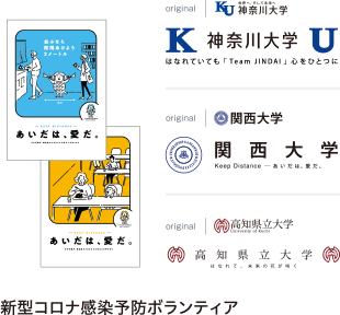 | 2020年 | 新型コロナ感染予防ボランティア ・ソーシャルディスタンス啓発ロゴ無料アレンジ ・感染予防啓発ポスター制作・配布 ・飲食店「先払い」支援 |